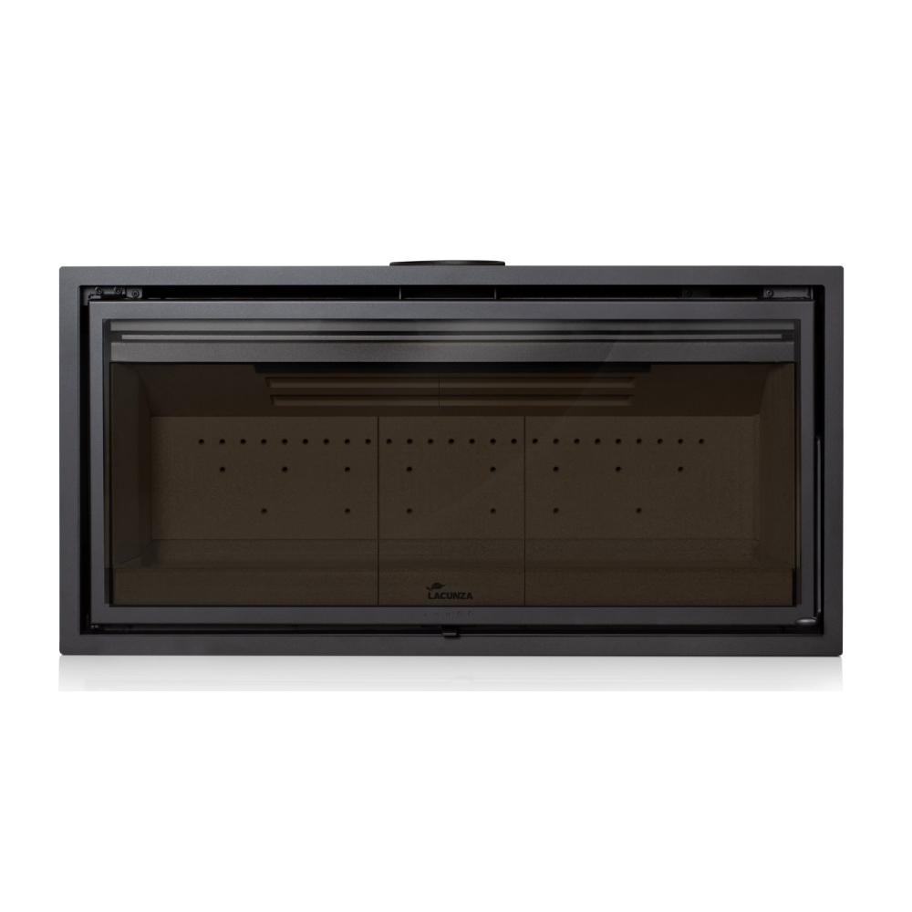 The Lacunza Nive 1000 built-in fireplace boasts outstanding performance features. A single control manages both the combustion system and the glass air wash, ensuring optimal operation and burning. Additionally, the double combustion system extends burn time and reduces consumption by efficiently burning gas obtained during the primary combustion cycle. Also available in a smaller 800 size, this fire offers flexible options including zero clearance and masonry installation, with external air intake capability. Fans are optional.